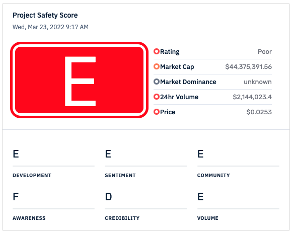 맵프로토콜 코인은 isthiscoinascam.com 에서 제공하고 있는 스캠 평가에서 E(Poor, 부족함) 평가를 받았습니다. 항목별로 살펴보게되면, 전반적으로 E 수준에 해당하는 평가를 받았네요.